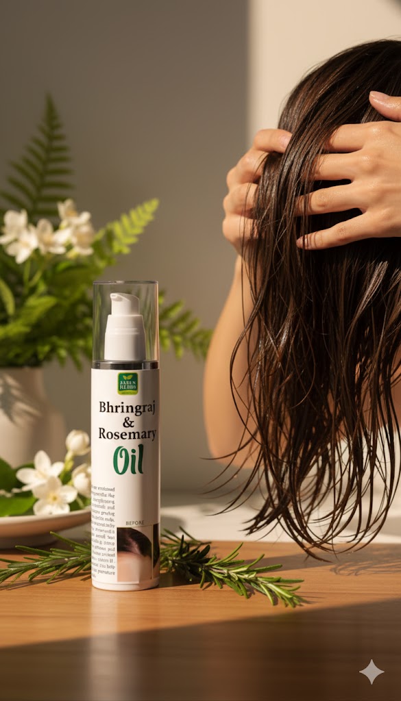 Revitalize your hair naturally with our Bhringraj & Rosemary Hair Oil. Enriched with the power of Bhringraj, known for promoting hair growth and reducing hair fall, and Rosemary Oil, famous for strengthening roots and adding shine, this oil nourishes your scalp and revitalizes your hair from root to tip. Regular use helps control dandruff, repair damage, and leave your hair soft, smooth, and healthy.